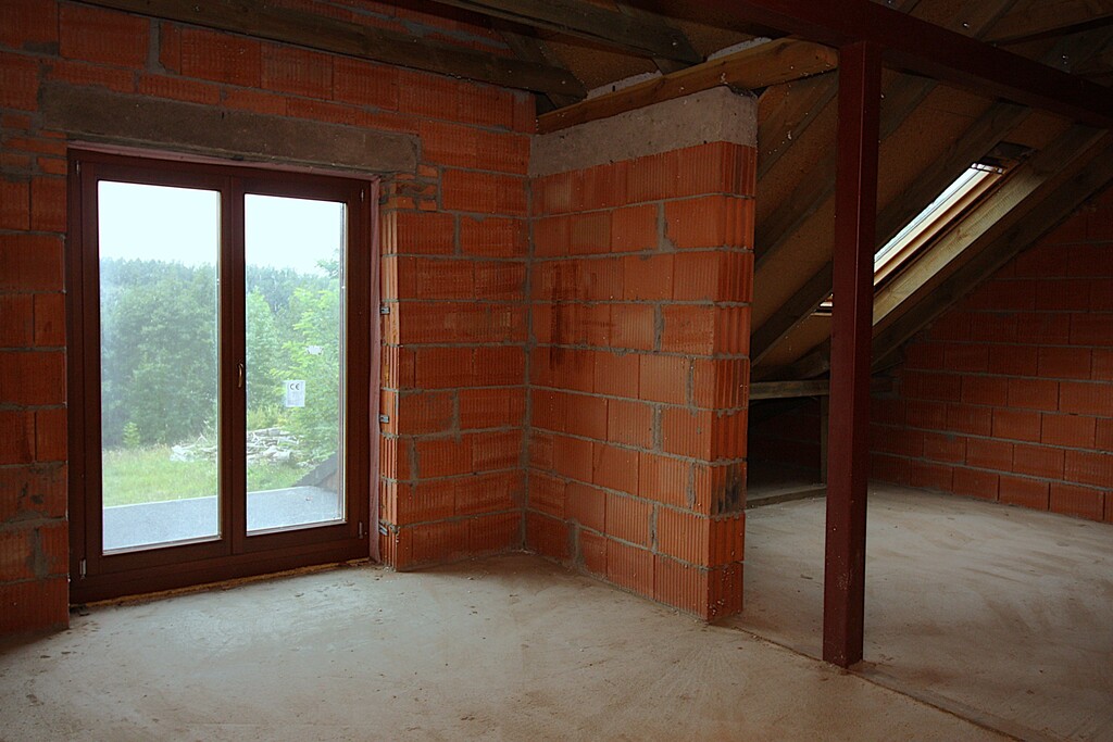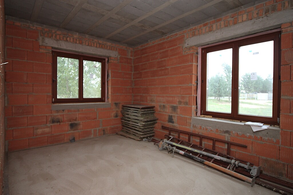 Dom zbudowany jest z pustaków ceramicznych POROTHERM gr. 25 cm, ocieplony wełną mineralną gr. 12 cm, zlicowany cegłą klinkierową gr.12 cm. Dach kryty dachówką ceramiczną. Okna i drzwi zewnętrzne z drewna klejonego, trójszklone.