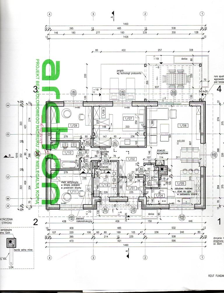 Na sprzedaż działka budowlana o powierzchni 865 m2 z rozpoczętą budową domu jednorodzinnego według projektu Dom w Lipiennikach 6 – w lustrzanym odbiciu, o powierzchni użytkowej 116,67 m².